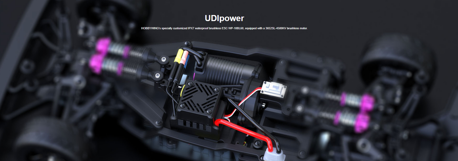 HOBBYWING's specially customized IPX7 waterproof brushless ESC WP-10BL60, equipped with a 3652SL-4500KV brushless motor.