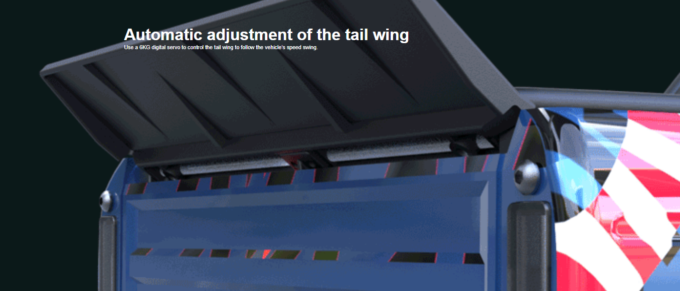 Use a 6KG digital servo to control the tail wing to follow the vehicle's speed swing.