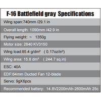 64mm EDF F-16 PNP GREY