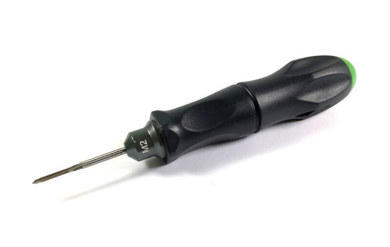 ABSIMA Thread Cutter Anyone who has ever built a car KIT, knows how difficult it can be to connect plastic parts with screws or threaded rods, since the plastic parts usually have no thread and must be idly by hand screwed. Especially for such connections, there is an optimal tool to pre-drill the thread and make screwing in a lot easier! Features: M2 thread cutter Made of the finest materials High-grade steel Handle in perfect size and surface feel Coloured end caps (AB3000071)