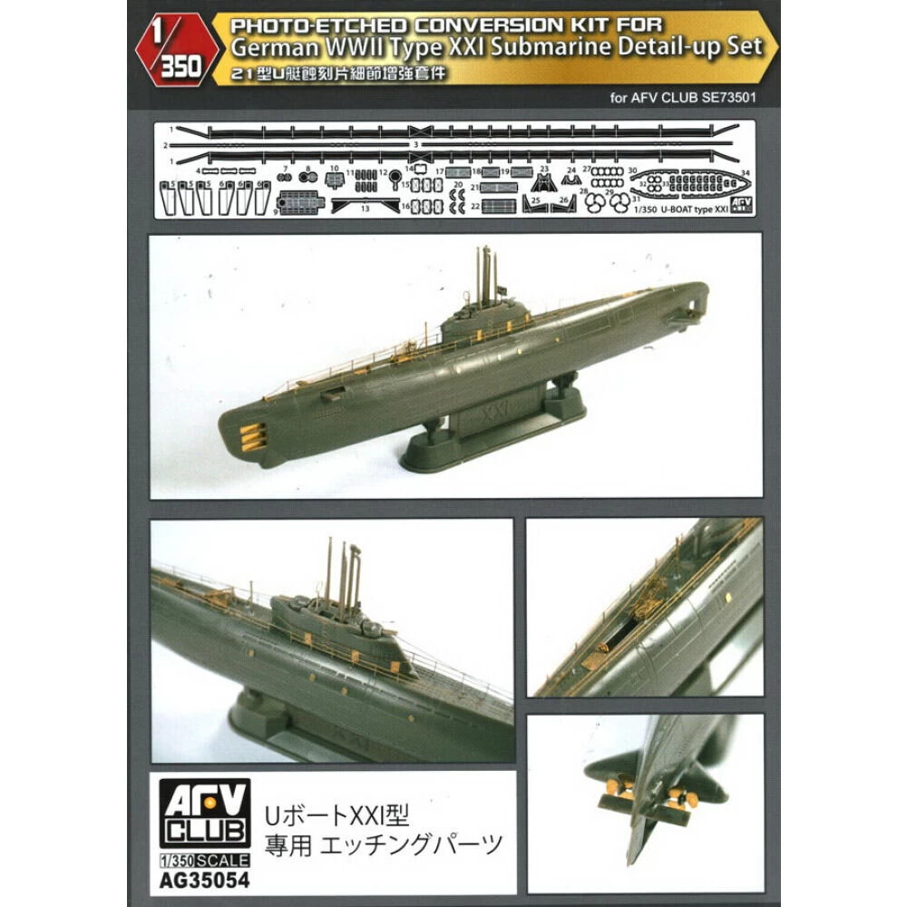 Afv club 1/350 u-boat type xxi photo-etched sheets of detail upgrade set [ag35054]