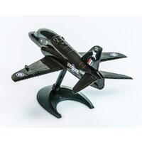The BAe Hawk is a superior jet trainer aircraft! This will be a striking addition to your collection. The model sports an all-black exterior and you can add RAF symbol stickers once assembled. This model has a total of 26 parts with 3 additional parts for the stand. The height of the model when placed on the stand is 123 mm.