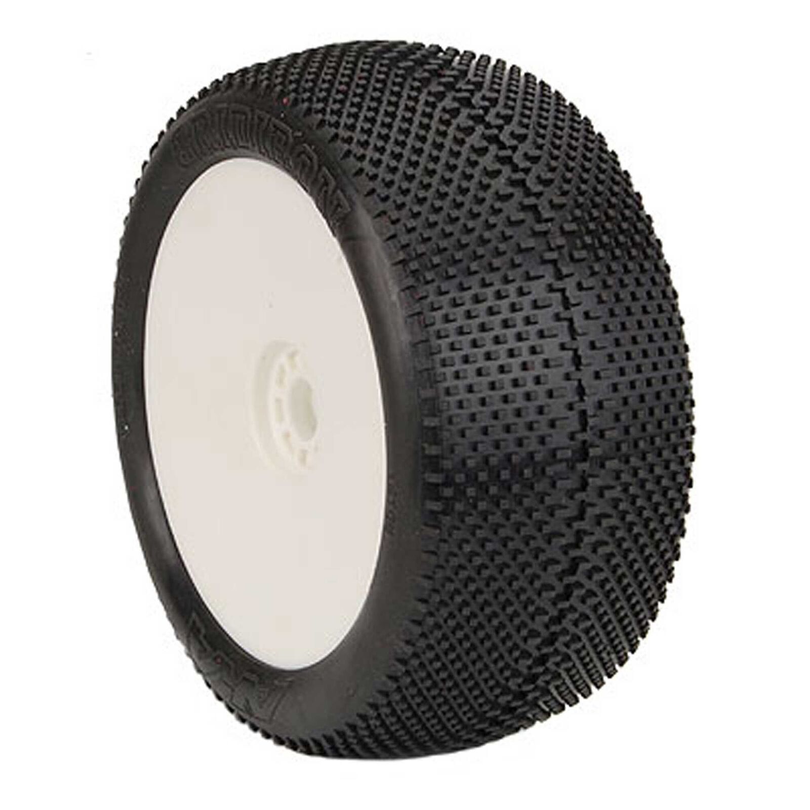Aka gridiron 1/8 soft long wear truggy tyres premounted on white rims, 2pcs