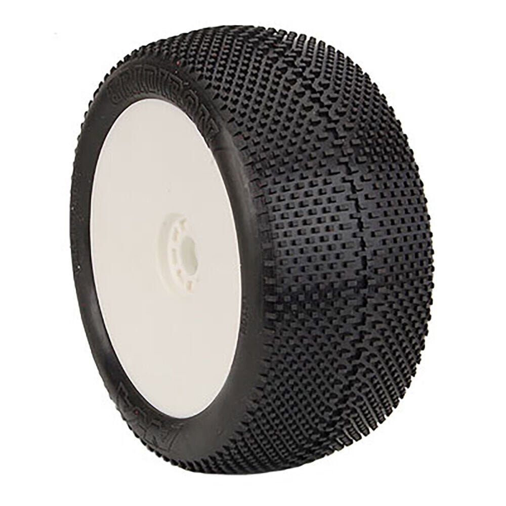Aka gridiron 1/8 super soft long wear truggy tyres premounted on white rims, 2pcs