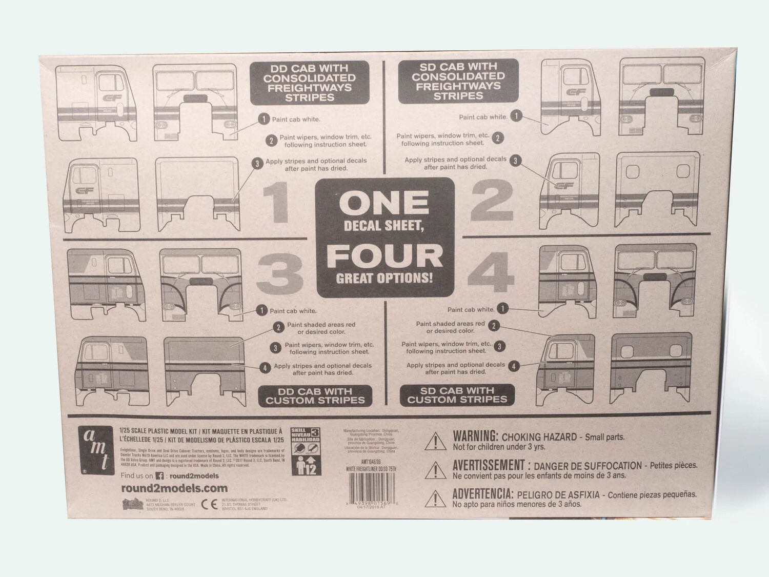 The kats at amt have pulled out all the stops for the 75th anniversary of white freightliner! It s a very special release of the ever-popular semi tractor, including all the parts necessary for the modeler to build it with single drive/day cab, or dual drive/sleeper cab configuration! Never before offered with these options together in one kit, this model exudes what it means to be retro deluxe! Also featured is a spectacular new decal sheet with multiple stripe and graphic options, none of which have been included in any previous single or double-drive release of the kit! This super-detailed semi sensation will come in spectacular 75th anniversary packaging with new retro-style illustrations from veteran amt artist, don greer! Don t miss it!