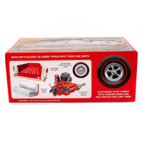 The latest release in AMT s series of Coca-Cola models is value-packed and features some special bonuses. First, and for the first time ever, additional optional custom wheels have been added to the Cameo, wrapped in wide, pre-lettered tires to create a mild, but unique, attractive custom version. For the big bonus, the included die cast parts allow the builder to assemble a period Coca-Cola vending machine and transport dolly to display with the finished model! Beautiful illustrated packaging will be popular with Coke memorabilia collectors and modelers alike!