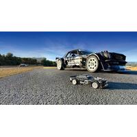 the hoonigan hoonicorn apex2 chassis is equipped with the latest features for on road racing. A front and rear independent suspension with threaded, oil-filled shocks and active rear toe give the apex2 the ultimate in handling on an uneven tarmac. This makes it a perfect platform for the hoonicorn and tire-shredding action!