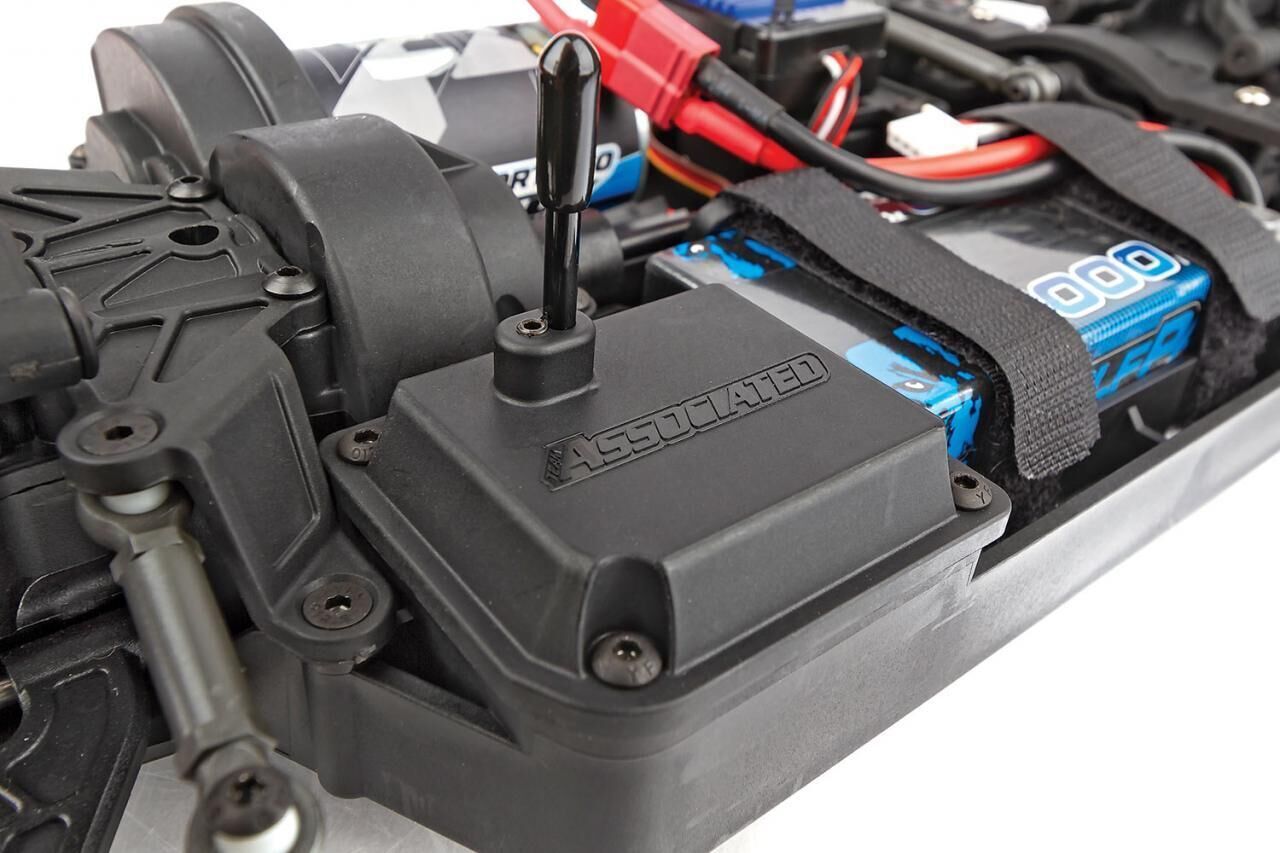 The Team Associated A550 Rally Car features a one-piece four colour polycarbonate body with highly detailed decal sheet, injection-moulded mirrors, windshield wipers, light pods, spoiler, headlights, and exhaust. The rally look is completed with a set of rally-inspired block tyres and white turbine-style 1.9" (41mm) wheels.