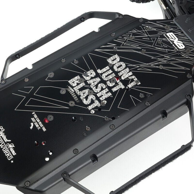 Vented, multi-terrain dBoots FORTRESS tires on multi split-spoke wheels give your MOJAVE EXtreme Bash Desert Truck 4WD Roller the grip to get up, over, or through anything in your way. And it doesn t just perform like a winner. It looks like one, too, with the included, exclusive EXB matte and gloss finish desert truck body, colour-coordinated roll cage and roof rails, and even a detailed cockpit.