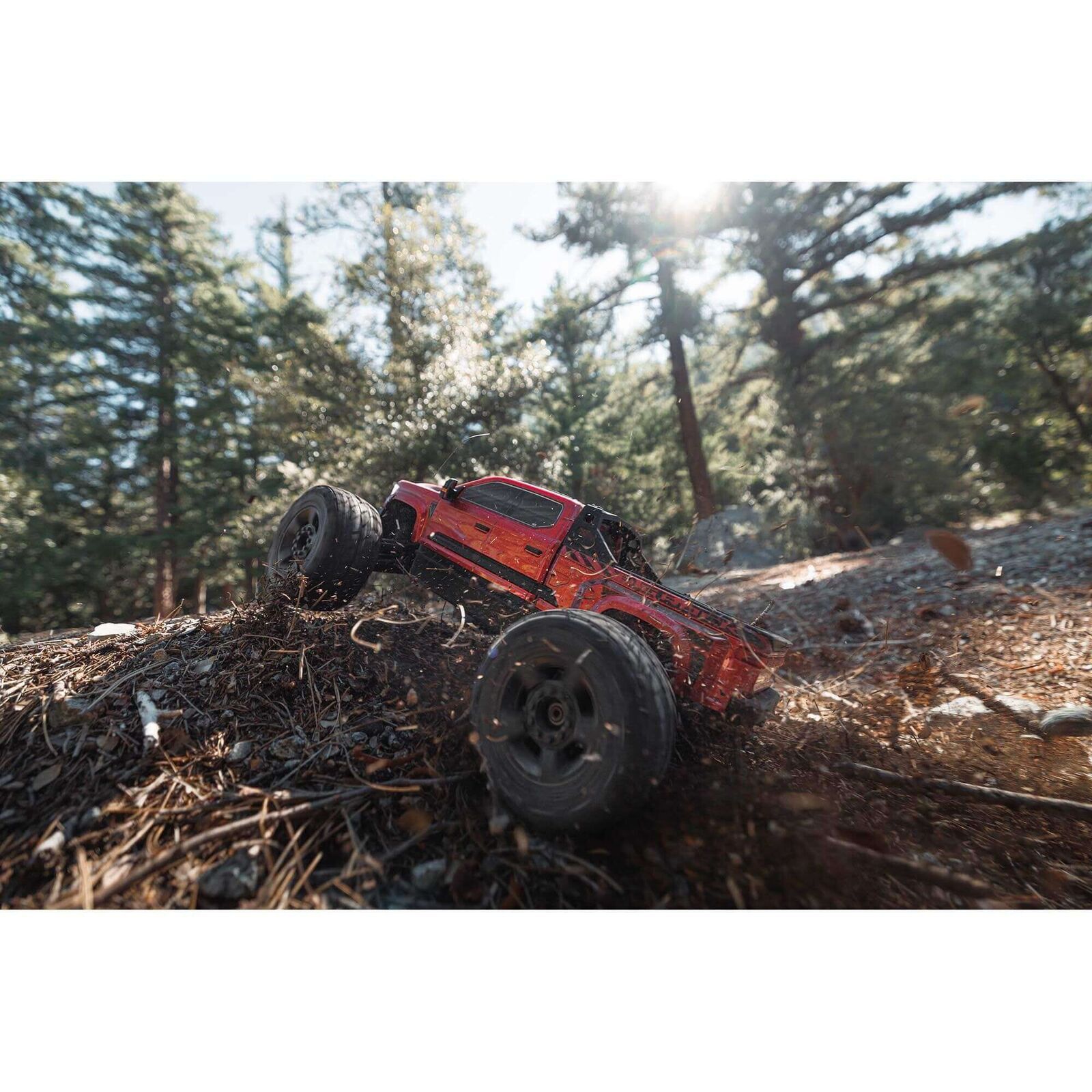 From the reinforced, black-anodized 6061-T6 aluminum chassis to the independent suspension with adjustable, aluminum-bodied, oil-filled shocks, the characteristically durable ARRMA design lets you fearlessly tackle all terrain and all conditions. The metal drivetrain, steel driveshafts, and metal-geared Spektrum S665 digital steering servo all work together to bring out the full bashing potential of 6S brushless power.