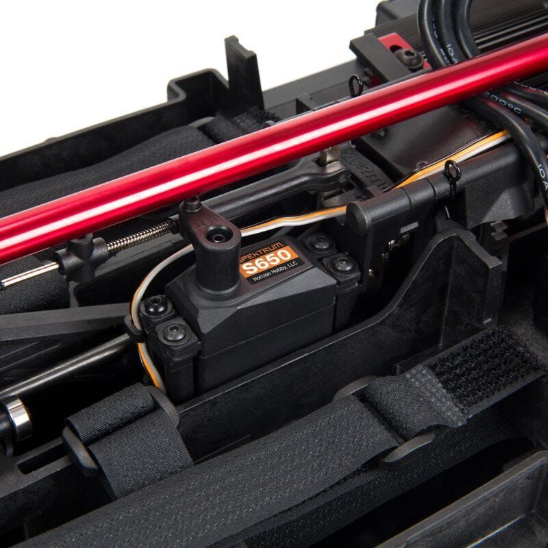 Another feature new to the INFRACTION 6S BLX 4WD is a handbrake. The chassis includes a module for a rear vented disc brake and a powerful Spektrum SPMS650 brake servo. You control the handbrake from a convenient switch on the DX3 transmitter for thrilling drifting, hooning and stunt action.