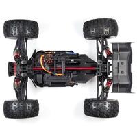 Arrma holds your maintenance downtime to the minimum with an efficient, driver-friendly design. A sliding mount allows quick, hassle-free motor access. The centre diff is easy to reach and can be removed by taking out just five bolts. Topping it all off is a monster truck body with streamlined good looks, featuring an eye-catching red/black or blue/black trim and detailed decals.