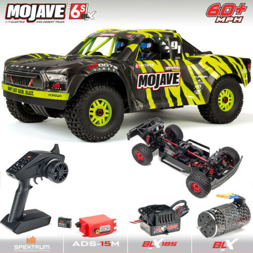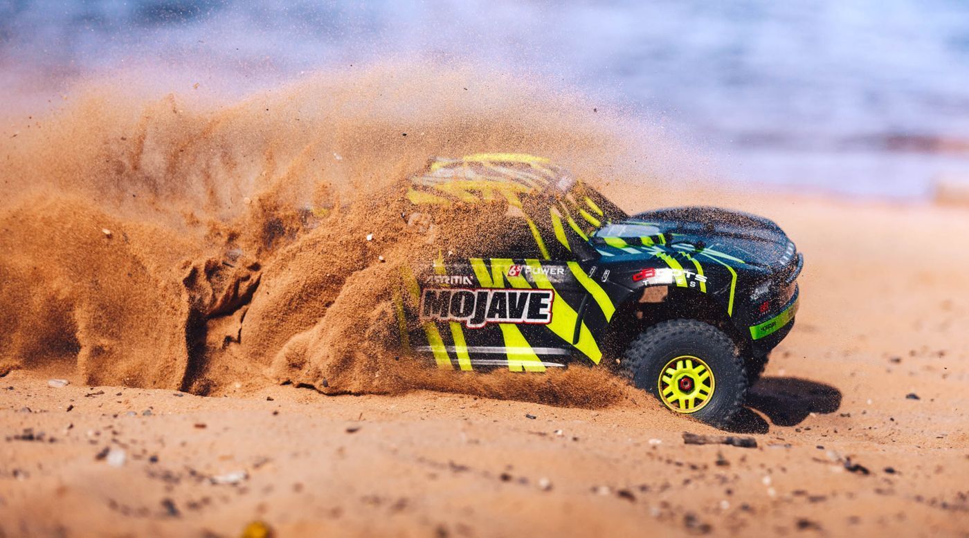The ARRMA MOJAVE ¢ ¢ BLX Desert Truck is a 6S-capable, extreme bashing, ready-to-run 1/7th scale juggernaut! You can tackle just about any surface in just about any weather with the complete control of a STX2 Spektrum radio.