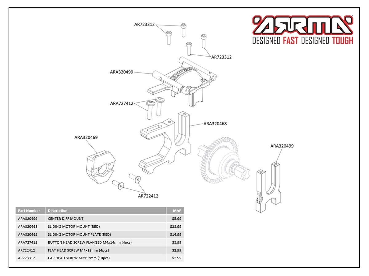 Write A ReviewArrma sliding motor mount, red - ara320468