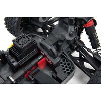 It has the ingenious modular design perfected by ARRMA engineers for easy component access and maintenance. The power module, with improved dirt management, consists of the motor with ARRMA heatsink and cooling fan, plus motor plate, slipper clutch assembly and gear cover. The power module can be detached from the chassis as a complete unit by removing just one screw. With the power module removed, the slipper clutch can be reached easily for adjustments by taking out three screws that attach the gear cover. The gear ratio can be finely tuned as the power module now uses a sliding motor mesh design.