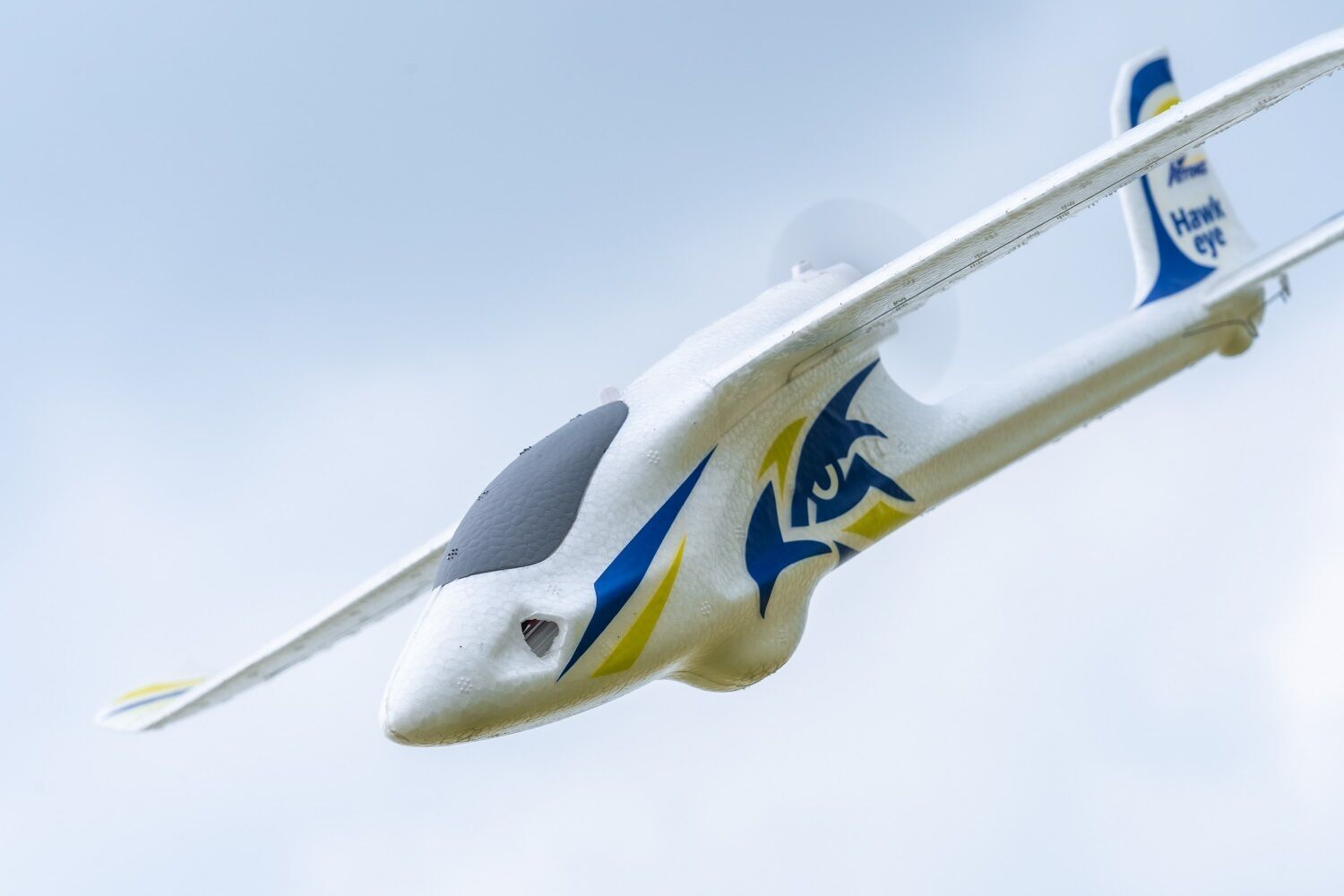 As a proper "all-rounder", the Hawkeye has a classic high-winged back-pushing design allowing for predictable handling characteristics. The pre-installed ESC and flight control system eliminates the need for complicated wiring harnesses and setup. Switch between stabilized and optimized gyro flight modes and the Hawkeye will suit pilots of any skill level. In addition, unless the aircraft is completely upside down, it is almost impossible to damage the back-pushing propeller.