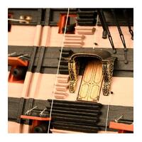 Thanks to this magnificent kit, you will be able to build this historic ship with its high level of detail. It contains over 6,500 parts made of high-precision laser-cut board, hardwoods, brass and iron cast. As well as copper lining for the hull, cotton sails sewn and ready to be fitted, and a wooden work base. Remarkable is that all its lower cannons are also complete, there are no false cannons. In total, it has 104 cannons, with six different types.