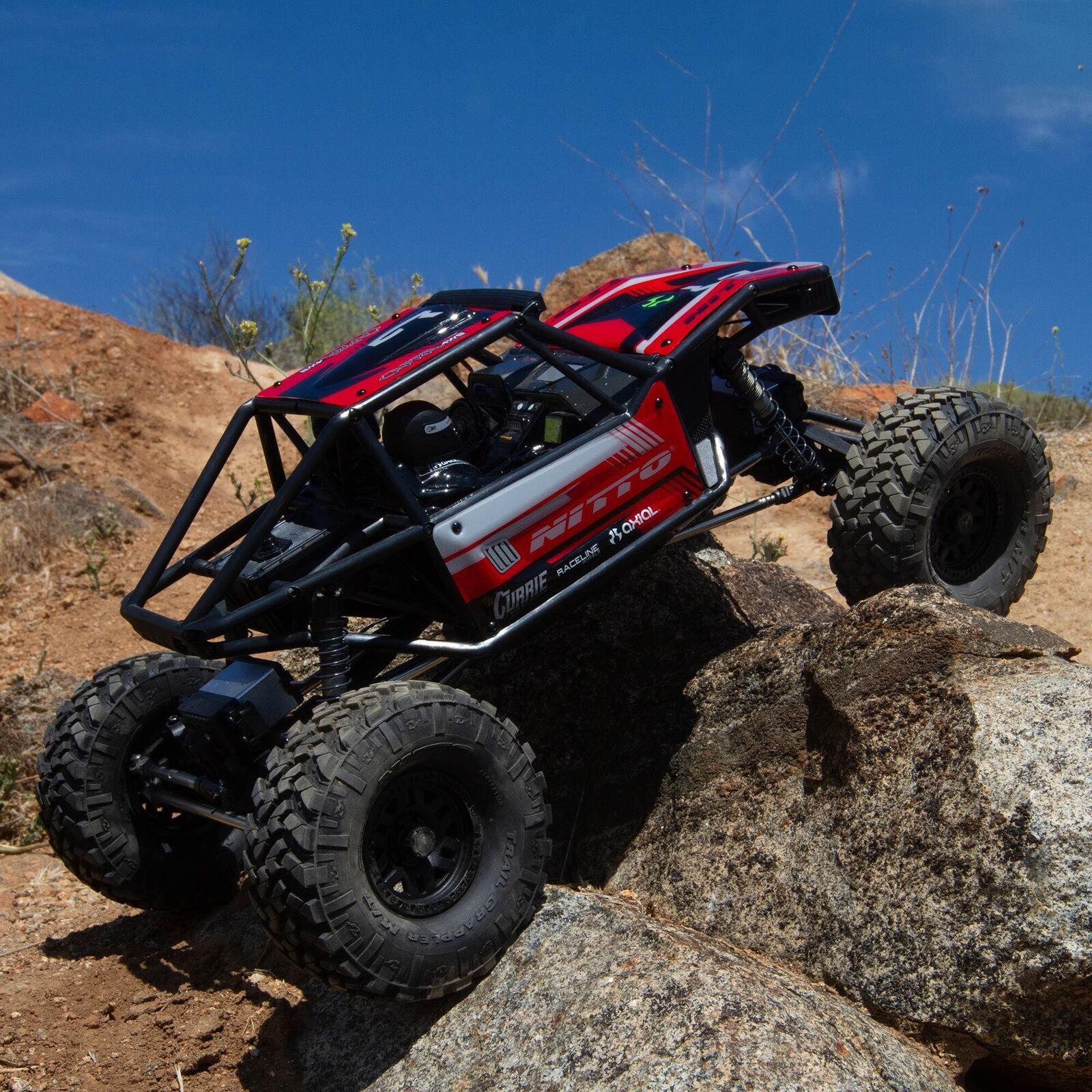 - Nitto Trail Grappler 1.9 tyres are mounted on injection-molded, 3-piece, licensed Raceline beadlock wheels