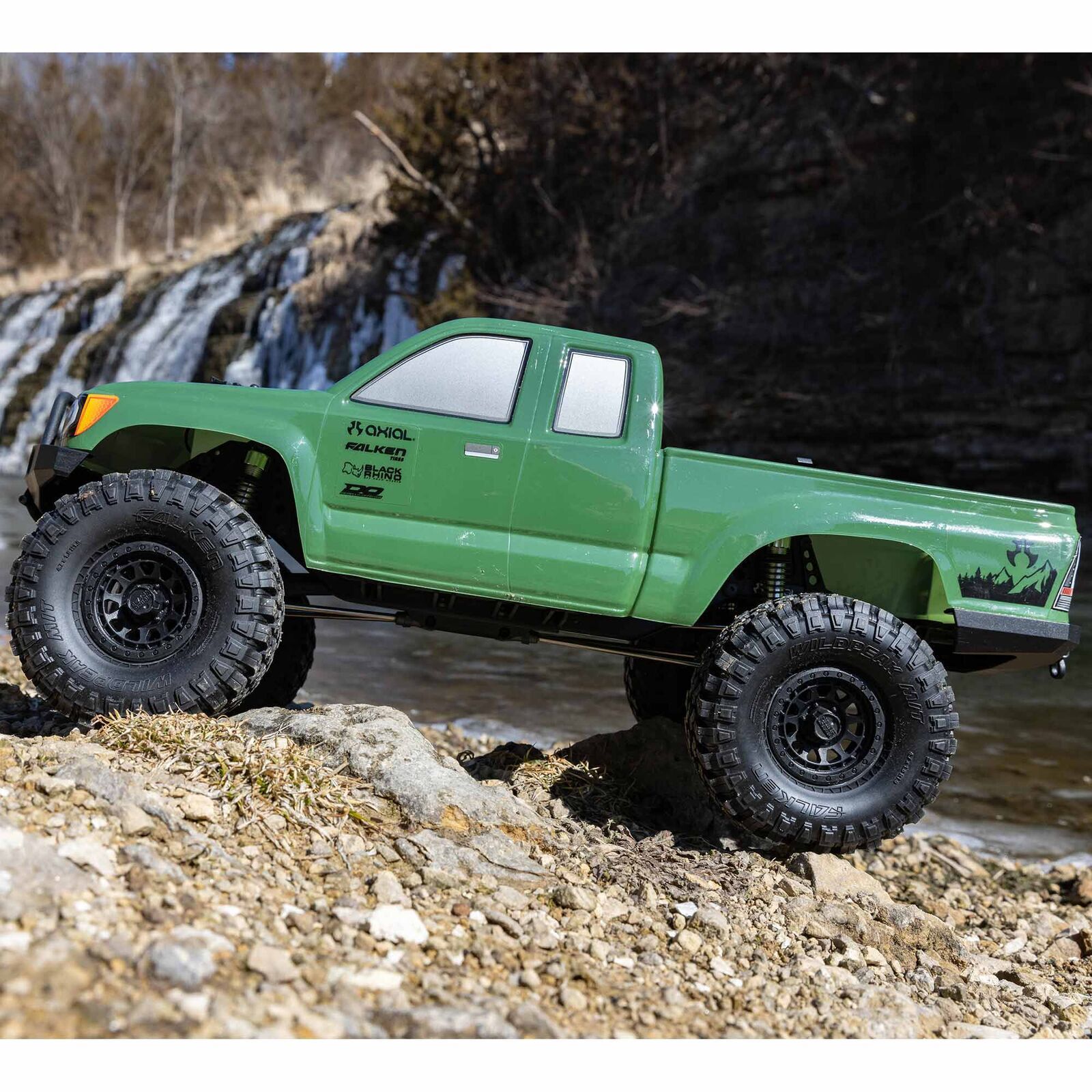 Officially licensed Black Rhino wheels add scale looks. The R35 compound Falken Wildpeak tires included with the SCX10 ¢ ¢ III Base Camp ¢ ¢ 4WD provide good ground clearance and a secure grip on dirt, rocks, and all other off-road surfaces.