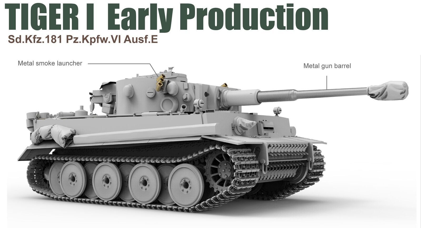 This kit from Border Models of the early production type of the Tiger I German tank is a new mold! It comes with a metal barrel and photo-etched parts, as well as various accessories.