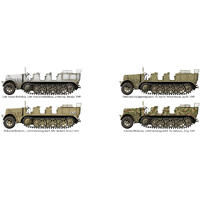 This model kit of the 1943 production type sd. Kfz. 7 from das werk features a connected, movable track, and a fully reproduced interior. Clear parts, photo-etched parts, decals for four versions, and six crew figures are also included