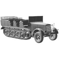 The sd. Kfz. 7 is an eight-ton towing half-track used by the german wehrmacht and waffen-ss during world war ii. In 1934, the kmm8 developed by krauss maffei was adopted as the sd. Kfz. 7, and in 1938, the kmm11, with a greatly redesigned bonnet, was adopted and mass-produced as the new sd. Kfz. 7. This model was also produced by borgwald, and from 1943 onwards also by saurer. The vehicle could carry up to 12 soldiers and was also used to tow medium-caliber artillery.