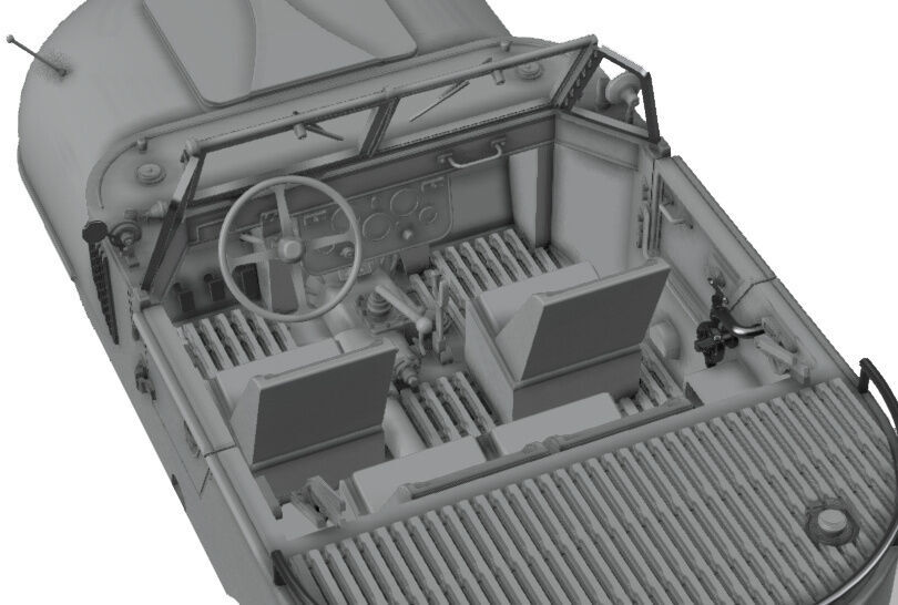 The military version was built with an enlarged interior. according to the ideas of the heereswaffenamt (hwa) or german army weapons agency, up to 16 soldiers should then be transported with the trippel sg 6/38