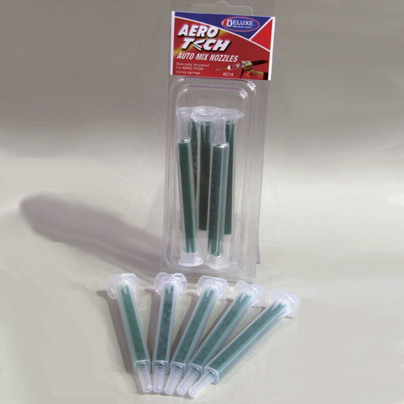 Specially designed mixing nozzles for Aero Tech cartridge. Pack of 5 mixing nozzles for use with Aero Tech epoxy syringe ensuring thorough mixing and maximum strength.