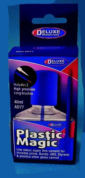 Bonds plastics other glues cannot: Deluxe Materials new formula Plastic Magic is a liquid solvent glue that produces invisible glue lines.
