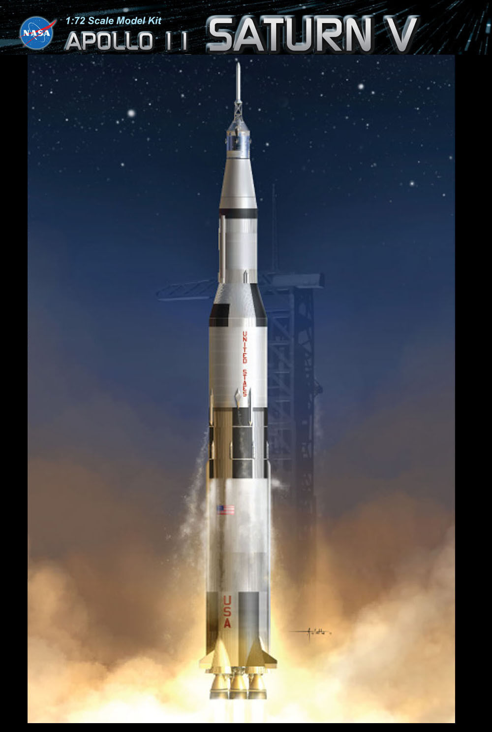 Dragons announcement of a 1/72 scale pre-finished replica of a Saturn V rocket in its Space Collection created a huge buzz among space aficionados! Even in miniature form, it was absolutely enormous, as the completed model stood an unbelievable 1.5m tall. Now eager model builders can get in on the action with a full kit version of the Saturn V. As the longest, heaviest and most powerful rocket ever produced, the original Saturn V stood 110.6m high and had a diameter of 10.1m. The Saturn V was at the heart of NASA...s Apollo and Skylab programs between 1967 and 1973. It was able to launch a 45-tonne payload into space beyond Low Earth Orbit. A total of 13 Saturn V launches took place, every one of them a success, plus they safely delivered 24 astronauts to the Moon.
