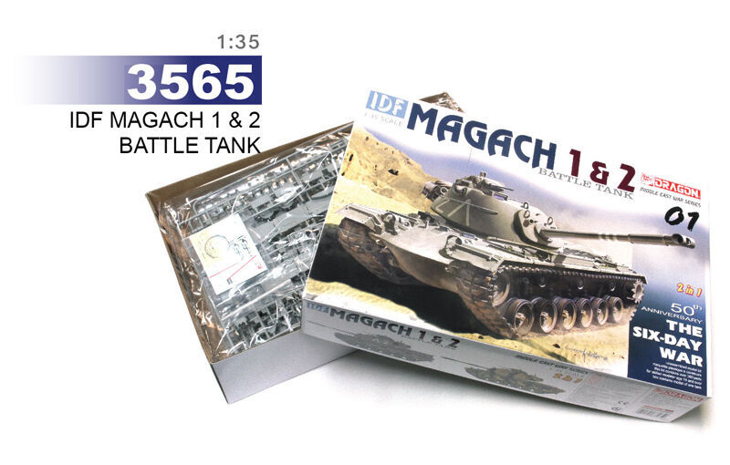This 1/35 scale kit inherits many of the excellent features of Dragon...s preceding M48A1 model, but it has been suitably modified to represent Magach 1 and 2 tanks serving in the IDF. As a 2-in-1 kit, it offers modelers great flexibility, and all necessary parts to build either variant are included in the box. Compared to the M48A1, there are brand new fenders, engine deck and muzzle brake. There...s a generous selection of photo-etched parts for delicate elements such as tool brackets, plus the tank uses tracks made from DS for added convenience. This is a splendid and highly detailed kit of the Magach 1 and 2, as Dragon delves into the fascinating world of Israeli armored vehicles.