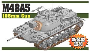 Dragon 1/35 M48A5 105mm Gun The model reproduces the M48A5 which became the final type of the masterpiece tank, M48 patton after the war, on 1/35 scale.- We carefully research the features of the A5 type and model it finely.- In addition to the turret that realistically reproduced the unique curved surface shape and casting skin, as well as equipped with 105 mm guns on the main gun, portable fire extinguishers and cupola machine gun mounts equipped on the left side of the turret with the new parts are also reproduced firmly.- The DS shielding cover of the main gun is prepared with parts of DS material to express the realistic texture.- In addition, the body also accurately models the characteristic shape of the M48 series with the undercarriage of the suspension arm etc.- We set a belt type DS truck with new parts as easy to assemble for the crawler belt.- In addition, the shape of the fender is also reproducing the characteristics of the A5 type.- In car body parts, the left and right fenders are also new parts to accurately reproduce the difference.- Military fans can not miss the appearance of the kit that M48 series is increasingly fulfilling.