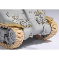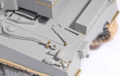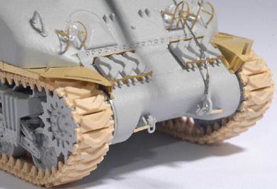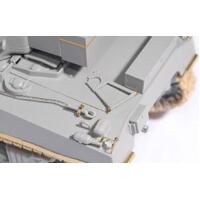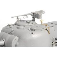 This kit is a brand new production that surpasses previous releases of the Firefly Ic Hybrid. It is finely detailed and makes widespread use of slide molds for accuracy and ease of construction. The turret, for example, is completely new with appropriate cast texture and rendered with bomb-thrower on the roof. The kit includes the plated-over MG position, with a couple of armor-plate designs for modelers to choose from. Dragon also includes a .50-cal machinegun and roof mount that allowed the weapon to be used for antiaircraft purposes. There is an ample selection of photo-etched parts to represent areas like the fenders and headlight guards. Dragon also offers the typical large stowage box that could be carried behind the turret bustle or on the hull. Another new element is the gun travel lock, which allows modelers to reverse the turret and clamp the gun in place for a tank in travel configuration. This is an exciting release of the Firefly Ic Hybrid, and it brings this subject up to the very latest standards.
