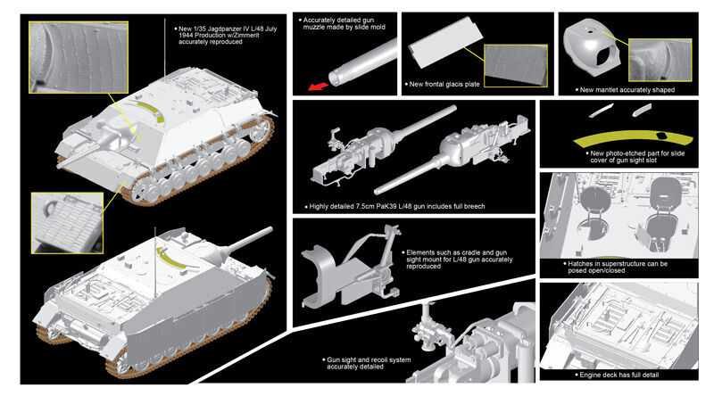 Dragon Models 1/35 scale German Jagdpanzer IV L/48 Assault Gun (July 1944 Production) with Zimmerit premium plastic model kit.