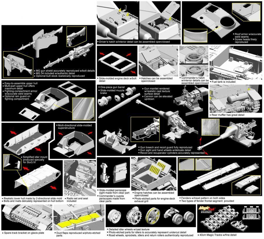 - newly tooled stug. Iv mid production fighting compartment authentically reproduced w/extra armor protection
