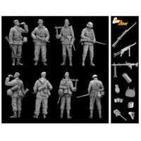 The four german figures contained in the set are all distinctly dressed and armed. Their uniforms reflect the wide variety of gear that was worn in this mid-war period. One of them is fully equipped for winter combat as hes wearing a camouflaged snowsuit, while another has a typical camouflage smock. They also carry a range of weapons that fit this stage of the war, including an mg34 machine gun, mp40 machine pistol and kar 98k rifle. The poses all possess a convincingly authentic look and theyll slot into a wide range of dioramas or vignettes with ease. For example, taking a swig from a water bottle or loading an ammo clip into a rifle were commonplace for soldiers, but such actions are rarely offered in 1/35 scale figures. These versatile plastic figures from dragon will inspire diorama ideas in modelers minds, and eventually bring their miniature scenes to life!
