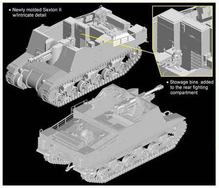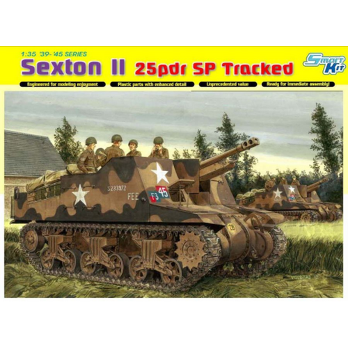 Dragon released a splendid 1/35 scale kit of the Priest self-propelled gun (SPG) as used by the US Army and also by the British Army in the North African campaign. Now, its British counterpart has appeared within Dragons ranks! Called the Sexton, this SPG was built in Canada by the Montreal Locomotive Works and it mounted the famed British 25-pdr howitzer. The Sexton appeared in 1943 and it replaced the US-built M7 Priest that featured a 105mm gun. Its the Sexton II thats depicted in this kit. This 25.86-tonne SPG was first used in Italy by the 8th Army, and they were also widely used in France and Western Europe. It operated with a crew of six men.
