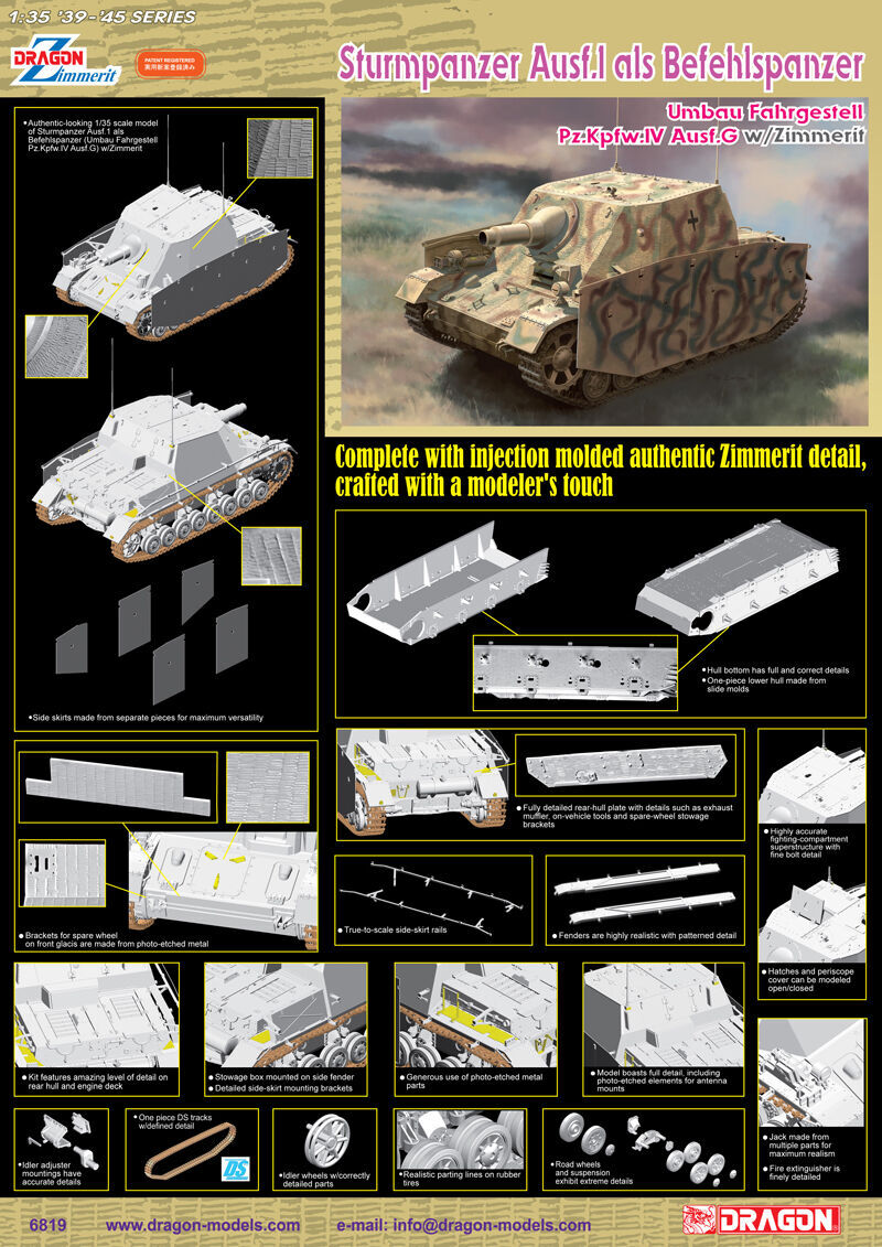 Dragon 1/35 sturmpanzer ausf.l als befehlspanzer w/zimmerit [6819]