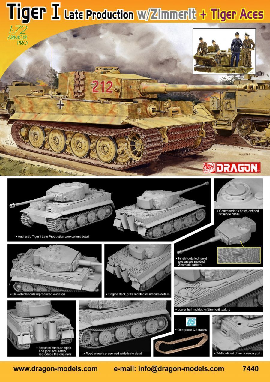Dragon 1/72 TIGER I LATE PRODUCTION w/ZIMMERIT + TIGER ACES [7440]