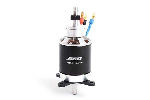 This ECO brushless motor 2826C (version C) is designed for airplanes and are based on CA2, long shaft, standard wire, Zen bearing, 0.35mm laminations, and N42SH magnets. The accessories include propeller mount, gold colour plugs, mount and screws.