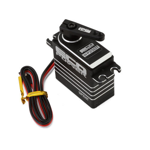 for 1/7 & 1/8 Traxxas, ARRMA, Axial, Losi & others EcoPower WP250T High Torque Waterproof Brushless Servo EcoPower WP250T Brushless Waterproof High Torque Metal Gear Servo was developed specifically for crawlers, bashers and RTR applications. Heavy 2.2 class rigs, U4 racers, lightweight and heavyweight 1.9 comp builds and ultra-detailed scalers can all benefit from the feature set that the WP250T delivers. Pushing over 681 oz-in of stump-pulling torque and .12 speed at 7.4V, the WP250T will move heavy 2.2 tires with ease, no matter how much weight you put in them. All this power means nothing without durability. By combining this incredible power with a specialized gasket system, the WP250T is waterproof up to 1-meter and will stand up to anything mother nature can throw at it. A full steel gear train, 25T output shaft and full aluminum machined heat sink case make the WP250T extremely tough. The WP250T delivers the excessive power that crawlers demand - with durability and reliability that make it a must have servo for crawlers that expect the most from their rigs. The EcoPower WP250T High-Torque Brushless Waterproof Servo Features: Ideal for any 1.9 to 2.2 Crawlers and 1/10 or 1/8 Off-Road Waterproof up to 1 meter 574 oz-in of torque @ 6.0V, and .14 transit speed 681 oz-in of torque @ 7.4V, and .12 transit speed 758 oz-in of torque @ 8.4V, and .10 transit speed Brushless motor High voltage circuitry Full steel gears for maximum durability and reliability Full aluminum black anodized heat sink case for enhanced heat dissipation Dual ball bearings 280mm servo lead Specifications: Servo Model WP250T Recommended Application 1/10 to 1/8 Scale Crawler & Bashers Operating Voltage 4.8V - 8.4V Operating Temperature 14° to 140° F (-10 to +60° C) Operating Speed @ 6.0V 0.14/60° sec Operating Speed @ 7.4V 0.12/60° sec Operating Speed @ 8.4V 0.10/60° sec Dynamic Torque @ 6.0V 574 oz-in (41.3 kg-cm) Dynamic Torque @ 7.4V 681 oz-in (49.0 kg-cm) Dynamic Torque @ 8.4V 758 oz-in (54.5 kg-cm) Motor Type Brushless Digital Output Shaft 25 Tooth Gears Steel Weight 82g Pulse/Frequency 1520 / 330hz Dimensions 40.2x20x44.5mm Length (Bottom to Mount) 27.5mm Includes: (1) WP250T Brushless Waterproof High Torque Metal Gear (High Voltage) Servo Composite servo horns Mounting Screws NOTE: Requires a servo extension lead for a drop-in TRX-4 fit. Arrma Felony 6S BLX Arrma Fireteam 6S BLX Arrma Infraction 6S BLX Arrma Infraction V2 6S BLX Arrma Kraton 6S BLX Arrma Limitless Arrma Mojave 6S BLX Arrma Outcast 6S BLX Arrma Typhon 6S BLX Axial Capra Axial SCX10 II Axial SCX10 III Axial SCX10 Pro Element RC Enduro Element RC Enduro Gatekeeper Losi Baja Rey Losi Baja Rey 2.0 Losi Hammer Rey Losi Hammer Rey U4 Losi LMT Losi LMT Losi RZR Rey SSD Trail King Traxxas E-Revo Traxxas Sledge Traxxas Summit 1/10 Traxxas TRX-4 Traxxas TRX-4 Vanquish VS4-10 (ECP-250T)