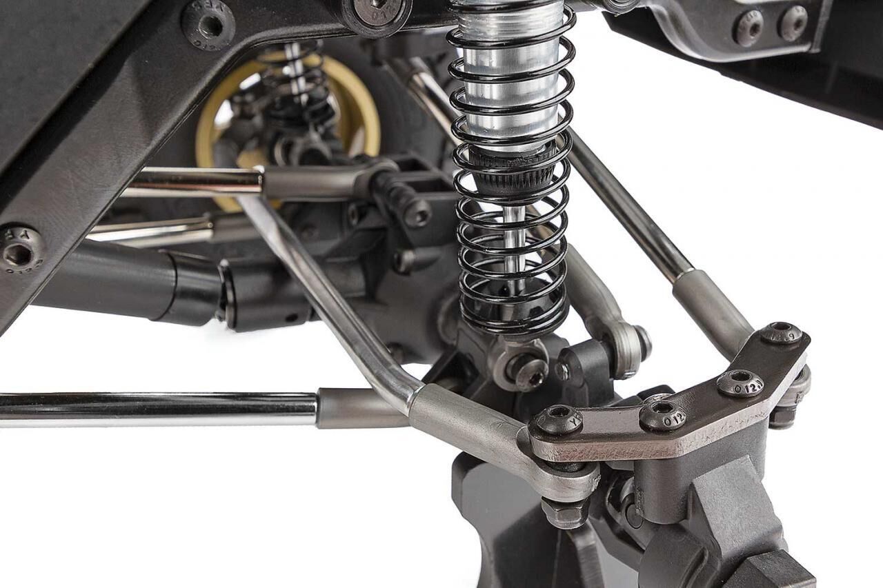 As with all our Enduro chassis, the steering link assembly has been relocated from the conventional location to behind the axle (BTA). This feature greatly improves approach angle and front-end clearance, making rough terrain much easier to handle.