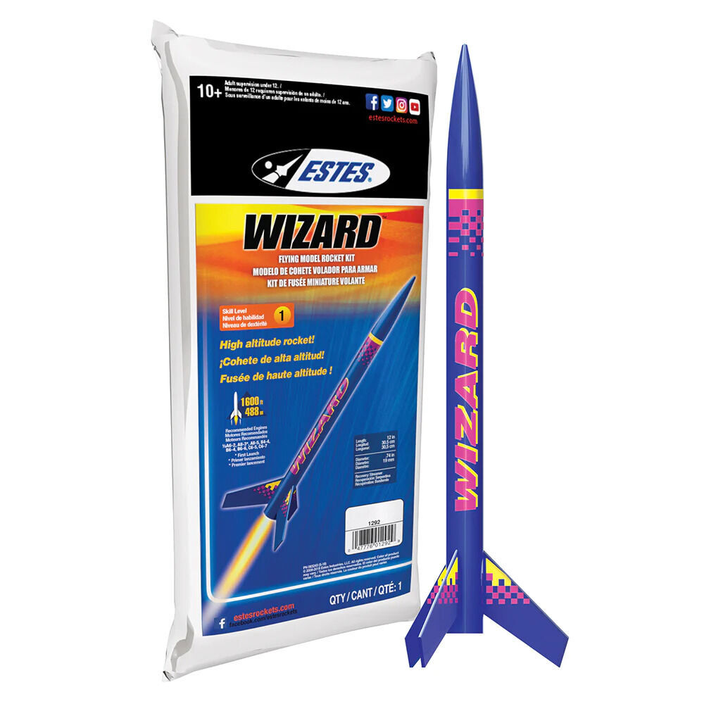 No tricks here - just the most magical, high flying rocket in the Kingdom! The Estes Wizard is an easy to build, high performance rocket that's known for casting spells on all who own it. One minute he's on the pad, then the next...poof...he's in the air! Standing 12 inches tall, this trickster can reach magical heights of 1600 feet or more using powerful Estes engines.