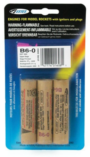 Estes 18mm Standard Engine B6-0 (3 ea) (UN0432 1.4s DG)