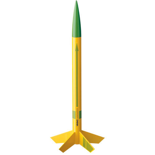 This easy-to-build, Skill Level 1 rocket kit includes a molded nose cone, a single piece body tube, card stock fins and self-stick decals. It's another friction fit, standard engine rocket that requires simple painting. The Viking can reach amazing launch heights over 1,600 feet and will drift back to earth on a bright streamer. The Viking is our most economical bulk pack rocket, so if youve got a tight budget it's definitely the one for you!