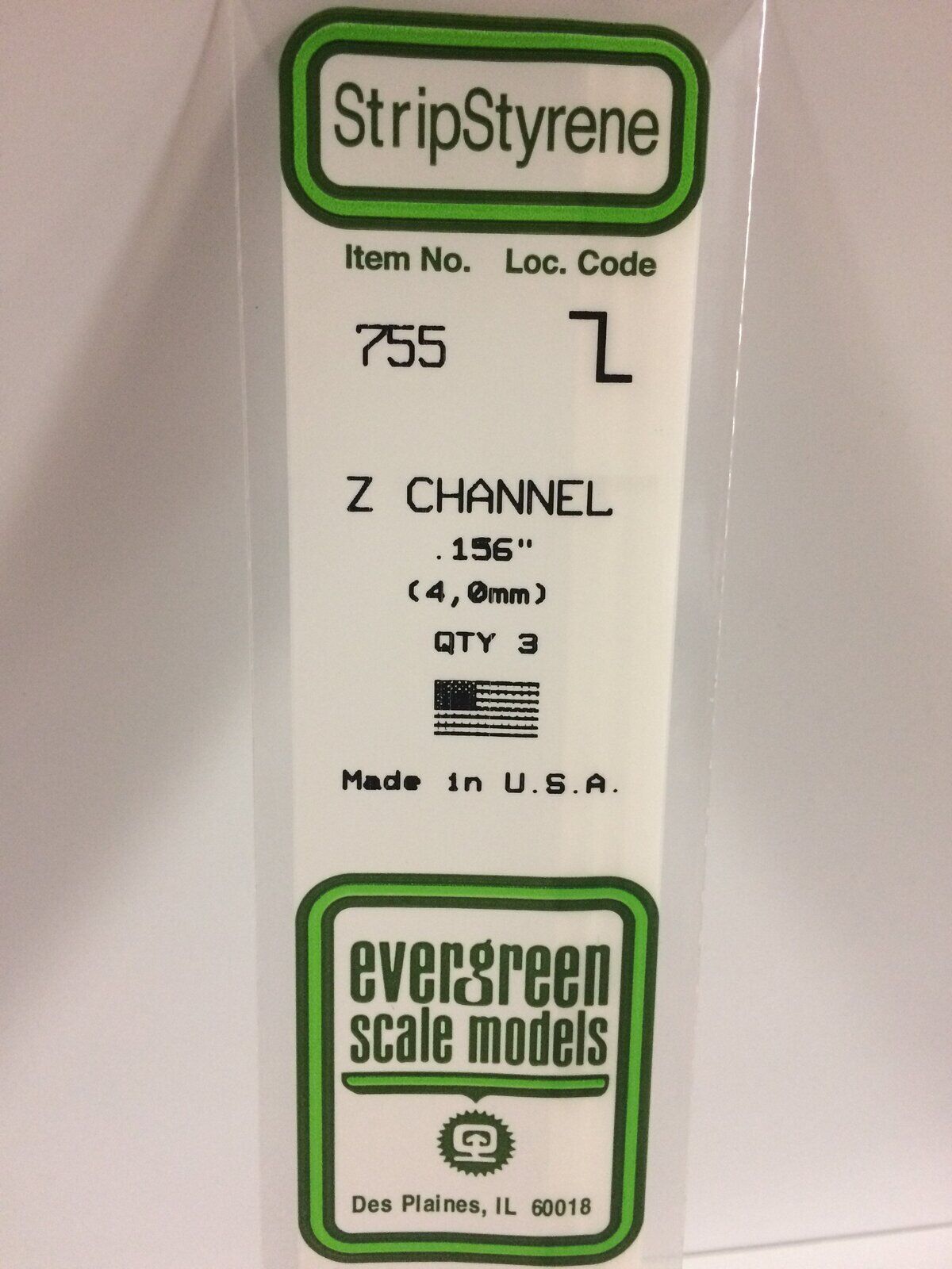 Evergreen White Polystyrene Z Channel .156 x .078 x 14" / 4mm x 2mm x 36cm (3)