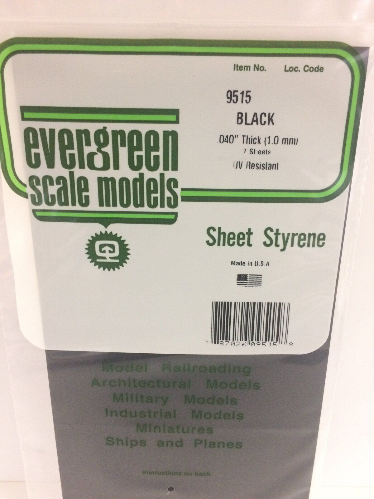 Evergreen Black Polystyrene Sheet 0.040 x 6 x 12" / 1mm x 15cm x 30cm (2)