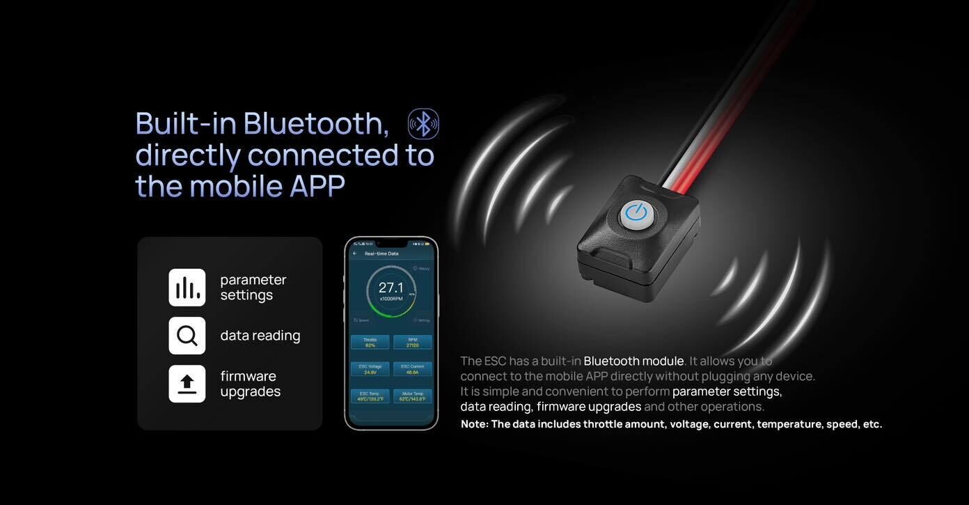 Bottomline The ESC uses a special process, coupled with an innovative waterproof design, to increase waterproofing and dust-proofing performance in different climates. It is easy to deal with the harsh conditions containing sediment, ice, and snow, water accumulation. Built-in ultra-powerful switch mode BEC with a continuous current of 6A, an instant 15A, and support for 6V/7.4V/8.4V switching, supporting a wide range of powerful and high-voltage servos. Equipped with the most advanced and safe electronic switches. The traditional mechanical switch protects and prevents dust, humid and other harsh environments, contact rust, and violent impact (such as flying slope landing) caused by the automatic closure of mechanical switches and other issues. Support the 32-degree turbo timing setting. When used with the matching motor (such as EZRUN 4278SD), the maximum rpm can be increased by about 25%, easily win your rival. Multiple protection functions: battery low voltage protection, ESC and motor overheat protection, signal loss protection, and current protection. Support LED program card, LCD G2 program box, OTA programmer (Note: optional) to set the parameters of the ESC. Real-time data logging to view various running data on the HW LINK app using the OTA Bluetooth module. Support the firmware upgrade of the ESC (The multi-function LCD G2 program box or OTA Programmer is needed to purchase), you can enjoy the latest functions. Specifications MAX8 G2S - Bluetooth G2 Scale Vehicles 1/8 1/8 Bluetooth Yes No Built-in Data logging Yes No Intelligent fan start-stop function Yes No Firmware Upgrade Yes Yes Motor Limit 4S Lipo: KV?3000; 6S Lipo: KV?2400 4278 size motor Same BEC Output 6V / 7.4V / 8.4V adjustable, continuous current 10A (Switch-mode) Same Programming Port shared with fan interface Same Switch Mode Electronic Switch Same Capacitor protection Yes Yes Waterproof Yes Yes Size (L.W.H) mm 60(L)x48(W)x40.5(H)mm 60(L)x48(W)x40.5(H)mm Weight (g) 194g 192g Input/Output Input? XT90 Output?6.5mm gold plug?female? Same (HW30103205)