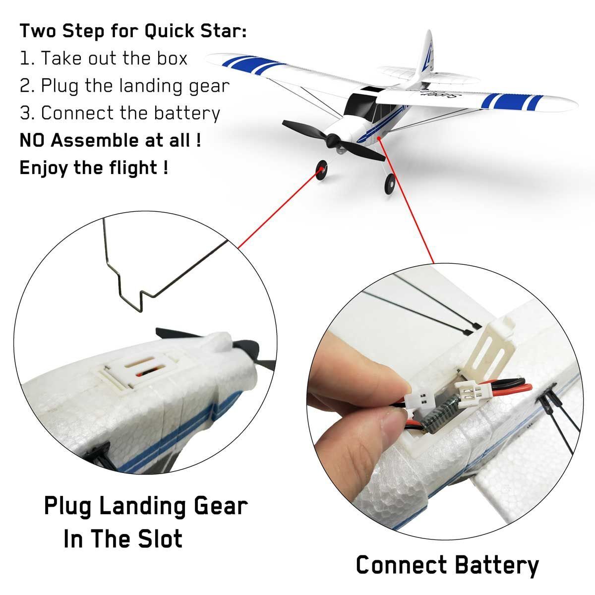 - fully assembled - true ready-to-fly (rtf version) package come with everything you need to get flying, allows the plane to take off within 2 minutes after you open the box.