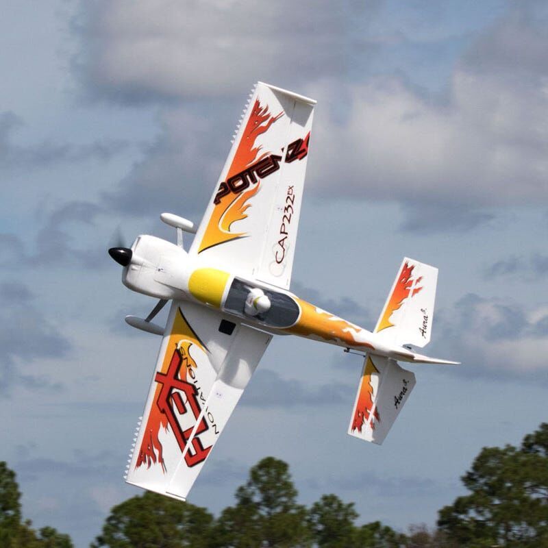 In Flex Innovation s continuous pursuit for the best flying airplane, our Design Team has created the second generation Cap 232EX 60E to take the Cap 232EX to a whole new level. Improvements include an optimized battery location and thrust angles to improve 3D performance, a removable battery tray, a new power system, tail spotlights on the night version, thumb screws for wing attachment, as well as traditional-style hinges being added to the tail surfaces for freer movement and greater reliability! Not only was performance improved, but we were also able to tweak the moulds to get a better fit/finish of the foam parts!